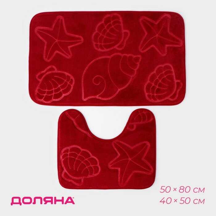 Набор ковриков для ванной и туалета Доляна «Ракушки», объёмные, 2 шт, 40×50, 50×80 см, цвет бордовый