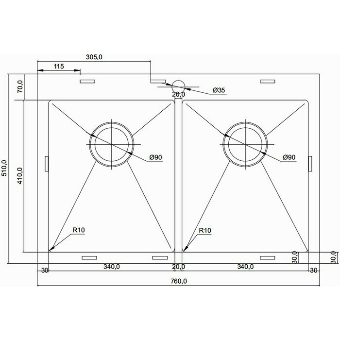 Мойка Seaman Eco Marino SMB-7651DS, стандартная комплектация, матовая нержавеющая сталь, две чаши, с платформой под смеситель