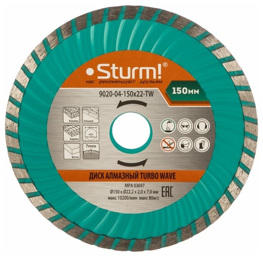 Диск отрезной алмазный Sturm "9020-04-150x22-TW" "Турбо Wave" сегментный, сухая и влажная резка, 150 x 22 мм