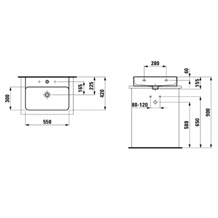 Купить Раковина Laufen Val 8.1628.2.000.104.1 55 для столешницы, с 1 отверстием, с переливом, белый