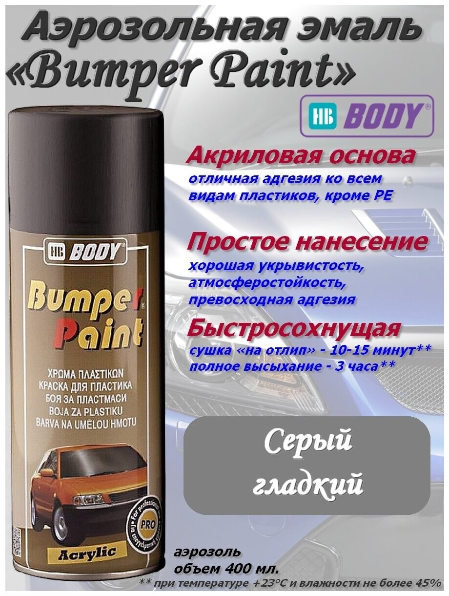 Краска HB Body "BUMPER PAINT", для бампера, серая, аэрозоль, 400 мл.