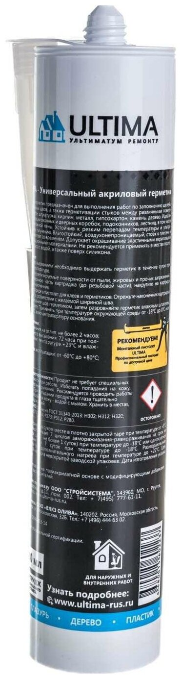 Акриловый герметик Ultima белый 280ml интересное: