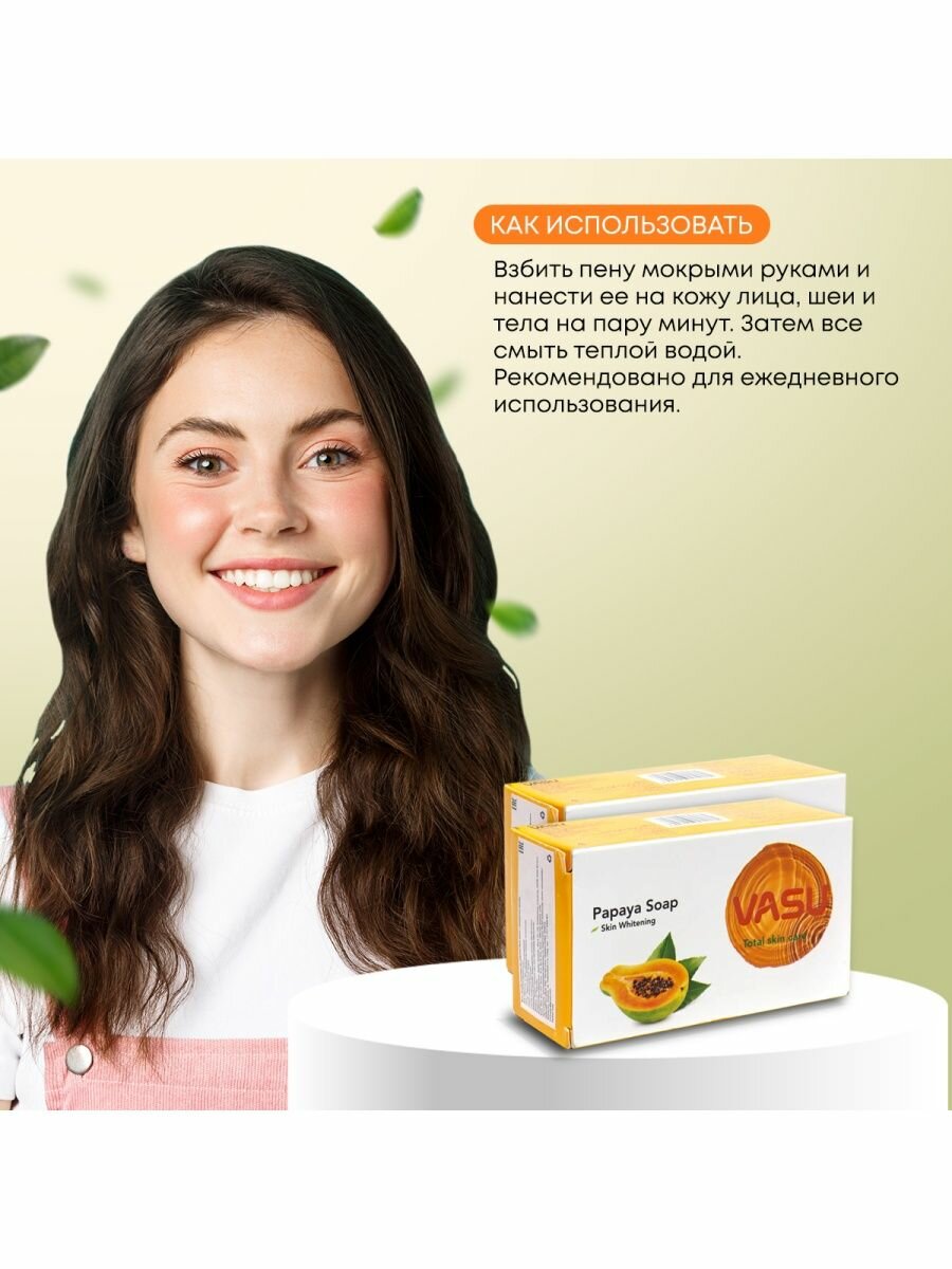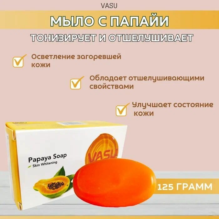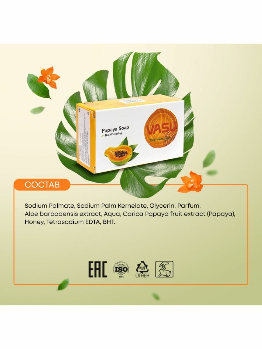 VASU Мыло с экстрактом папайя для тела из Индии, 125 г
