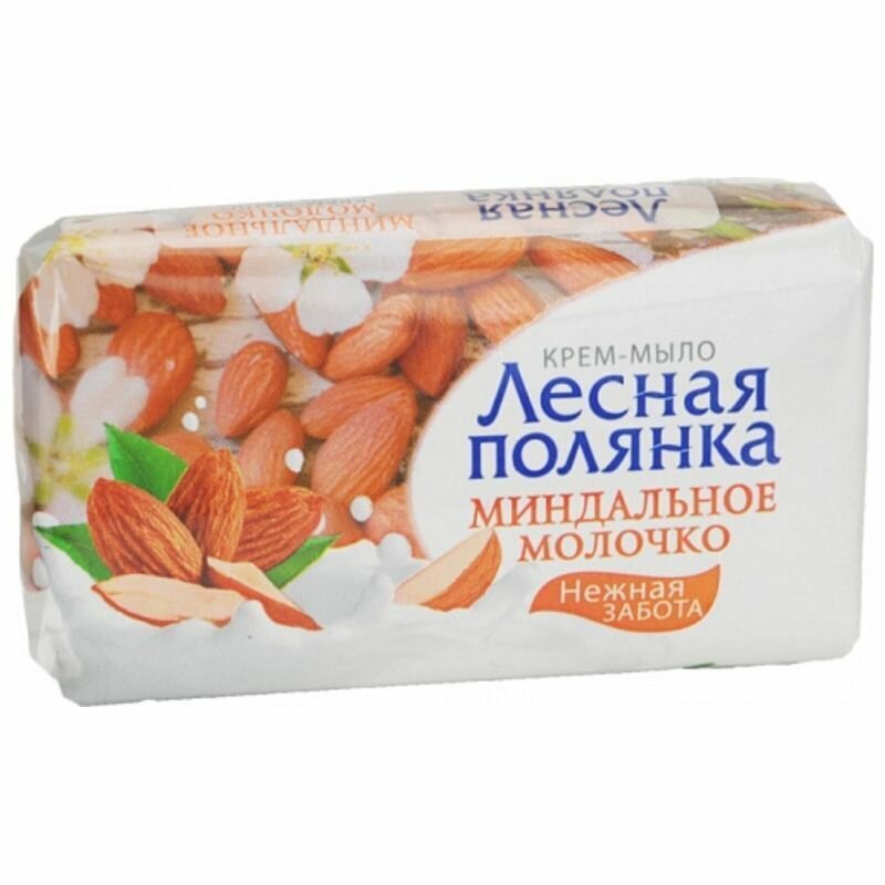 Мыло-крем туалетное твердое "Лесная Полянка" 90г, 9х5,5х2,5см, миндальное молочко (Россия)