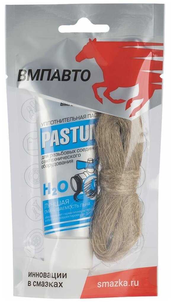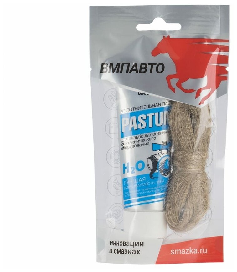 Паста ВМП авто "Pastum H2O", сантехническая, для уплотнения резьбовых соединений, тубик, комплект со льном, 70гр.+15гр.