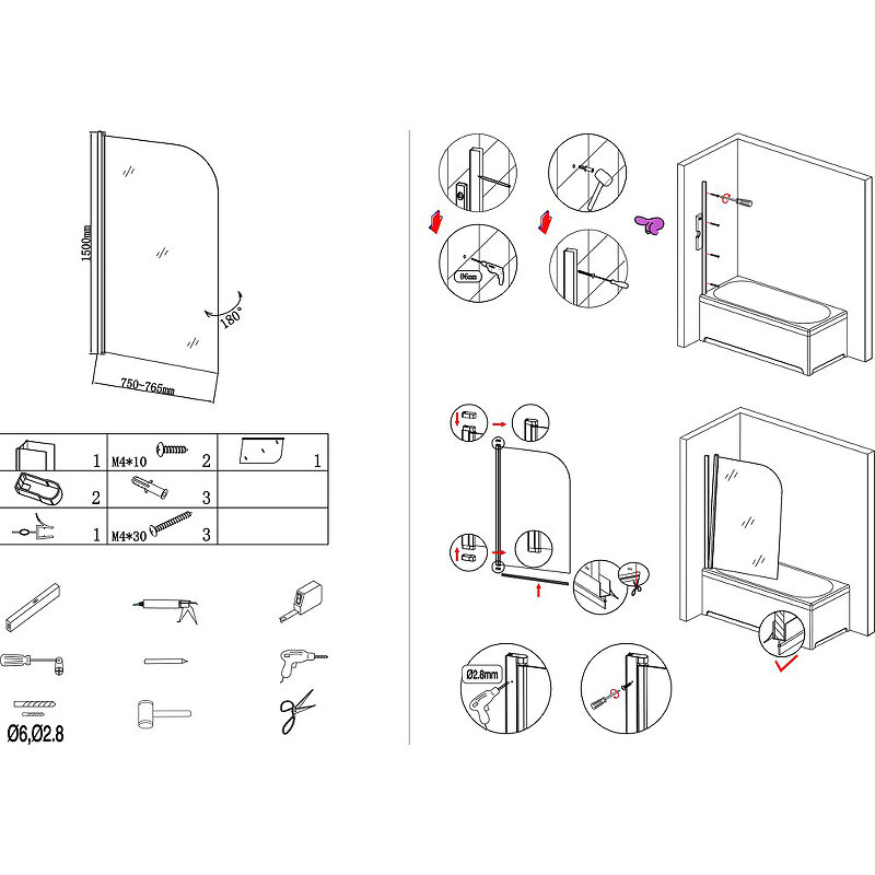 | Плюсы: | Удобная, стекло хорошего качества, хорошо чистится. Легко крепится. За счёт поворота шторки, можно свободно чистить бортик ванны |