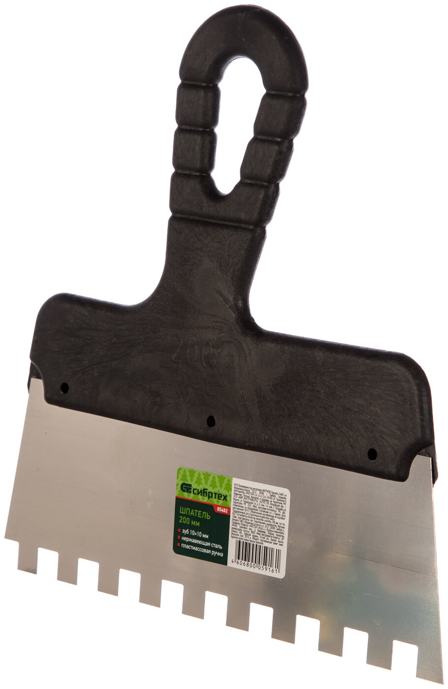 Купить Шпатель из нержавеющей стали, 200 мм, зуб 10 х 10 мм, пластмассовая ручка Сибртех 85482