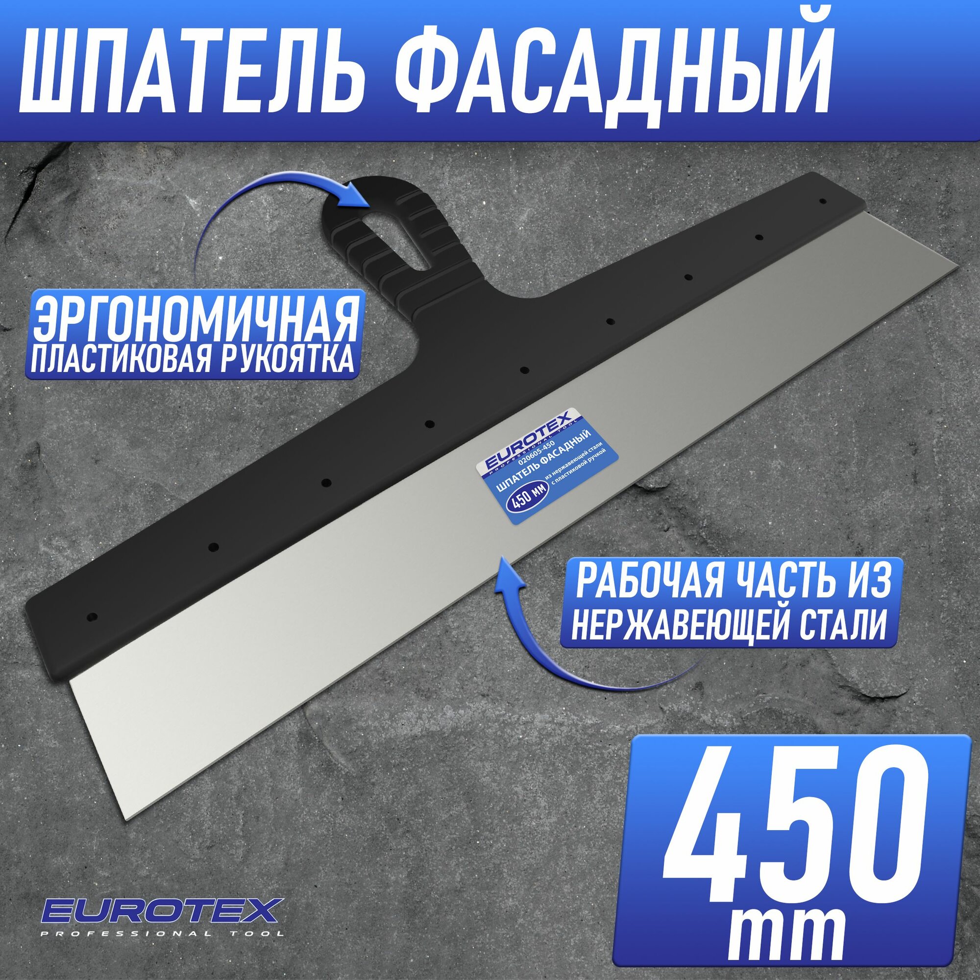 EUROTEX Шпатель фасадный 450мм нерж.сталь пластмассовая ручка, арт.20605-450 (арт. 604369) интересное: