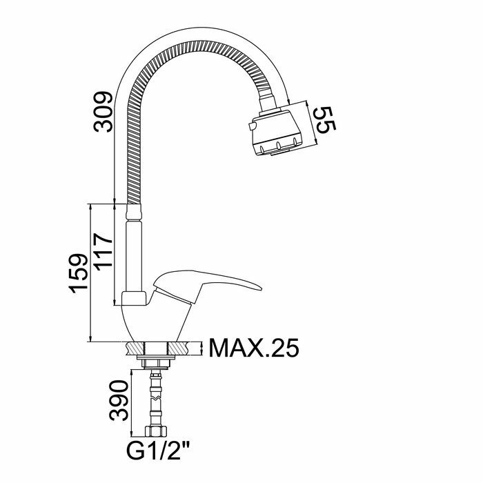 Смеситель для кухни A4840, однорычажный, гибкий излив, хром