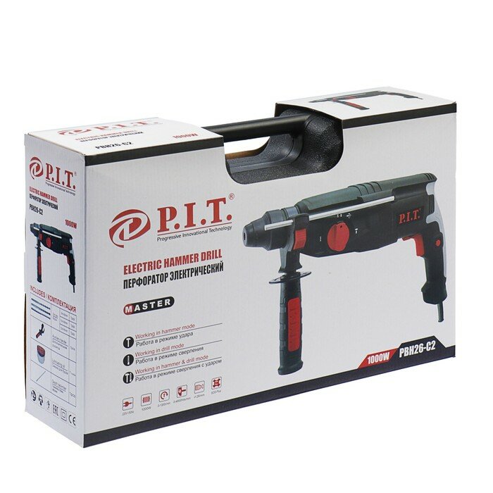Перфоратор РВН26-С2 мастер (3-реж. горизонтальный, 1000Вт. 3,2дж.SDS+ пласт.кейс, макс диам.бура 26м P.I.T. PIT PBH26-C2