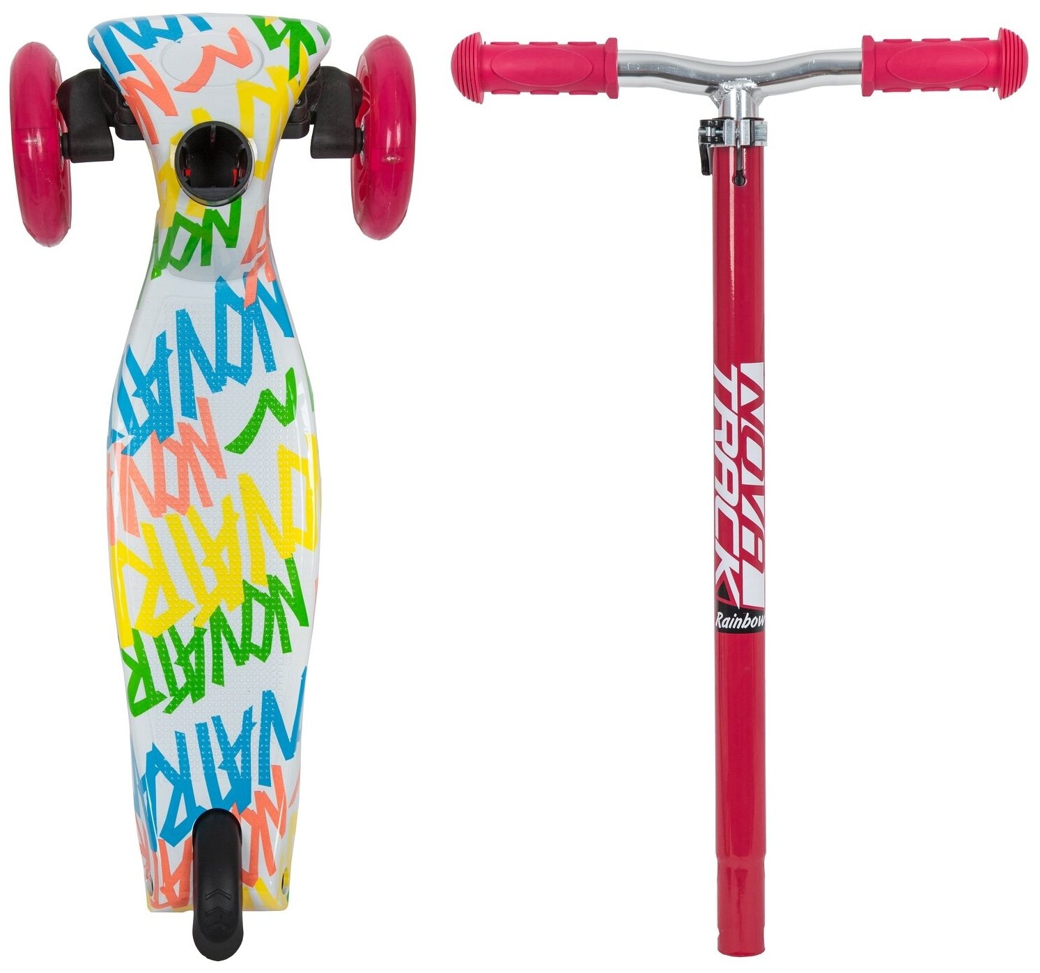 Самокат для детей Novatrack RainBow Start Graffiti, свет.колеса PU пер.120*24 задн.80*2