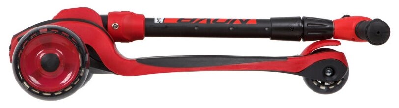 Самокат-кикборд Novatrack RainBow, для детей, двухцветная платформа, складной, регулирууемый по высоте руль, широкие свет.колеса (свет снаружи и внутри обода) PU пер.120*50 задн.80*48, свет колес, ватер стикер, красный