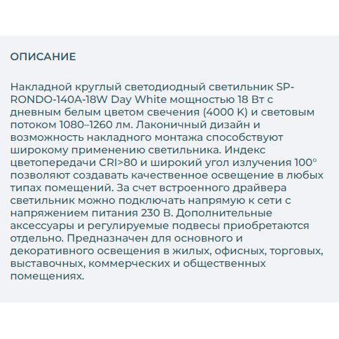 Сохранить021782 Светильник SP-RONDO-140A-18W Day White (ARL, IP40 Металл) интересное: