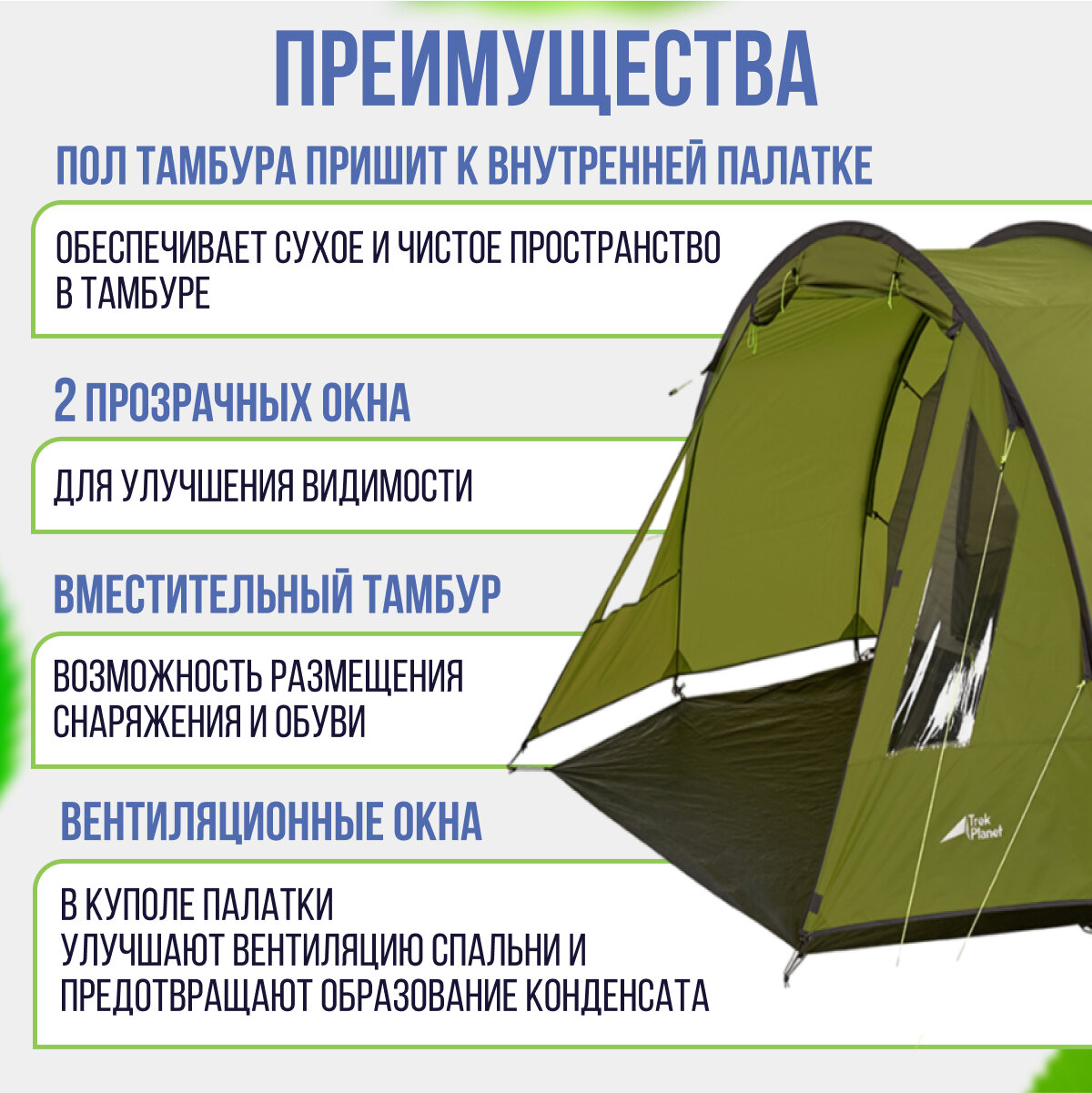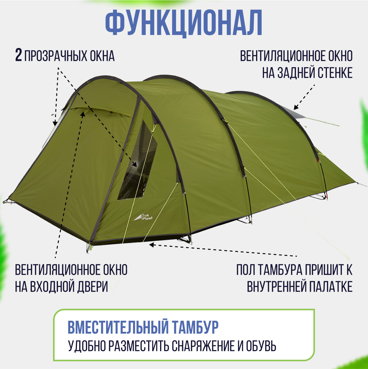 СохранитьПалатка трехместная TREK PLANET Ventura 3, цвет: зеленый интересное: