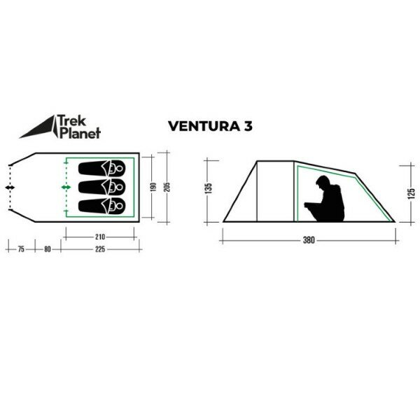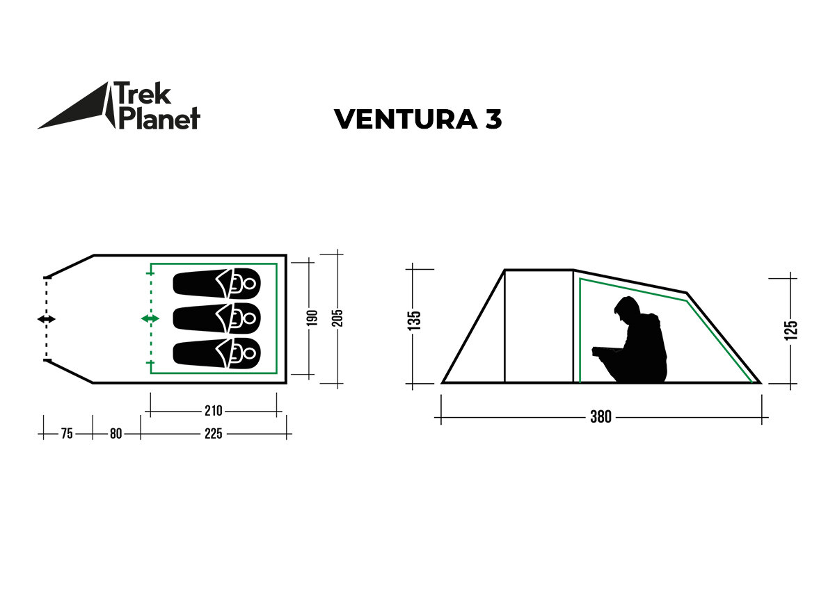 Палатка TREK PLANET Ventura 3-местная зеленый 205x(225+155)x135 см 70211