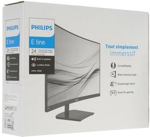 Монитор 23.6 PHILIPS 241E1SCA/00 Black (VA, изогнутый, 1920x1080, 75Hz, 4 ms, 178°/178°, 250 cd/m, +HDMI, +MM, AMD)