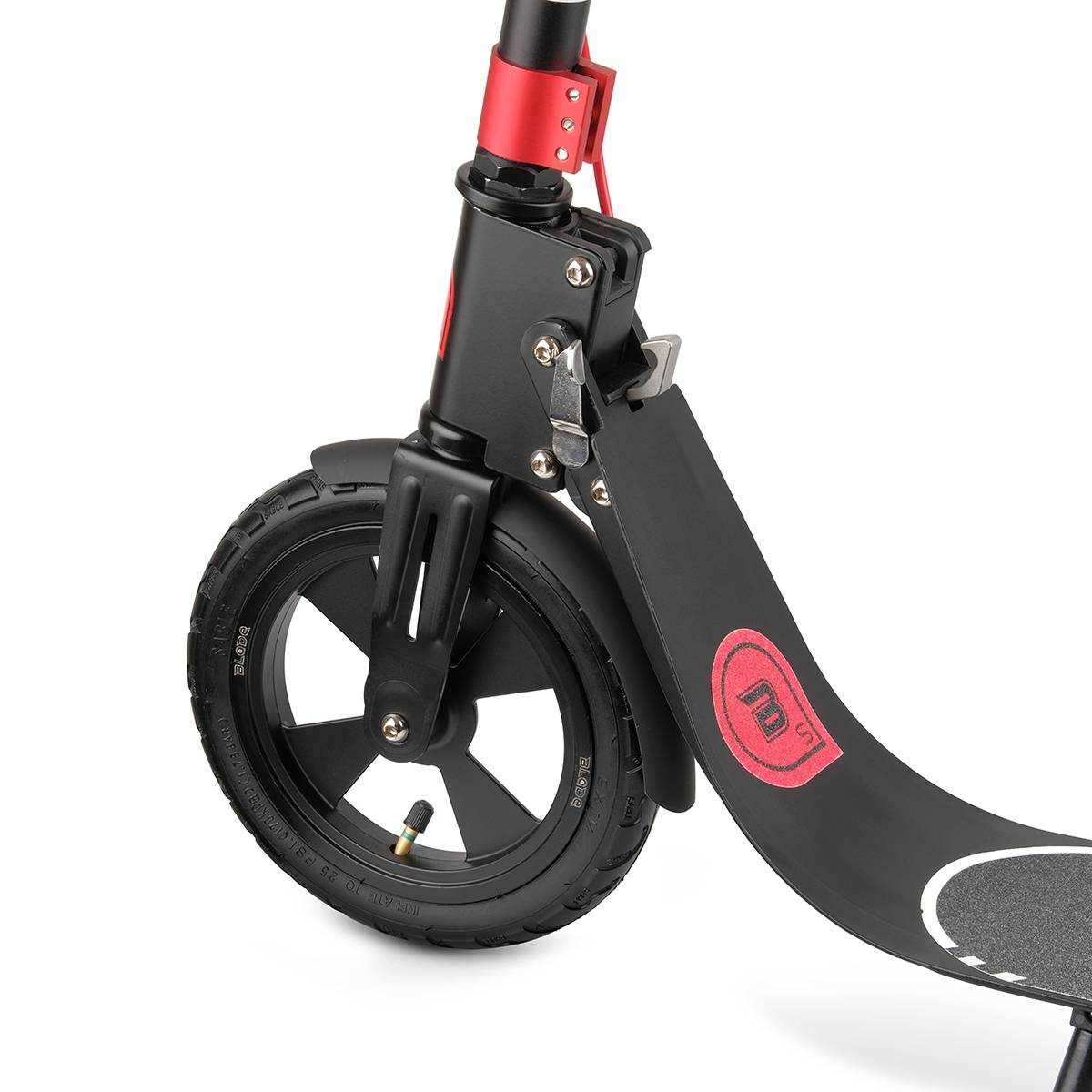 Была цель приобрести самокат для езды на 10+ км, а не для катания по дорожкам в парке. Удалось прокатиться на самокате с литыми колесами. Понял сразу, что это не мой вариант. Замечательное качение, но ВСЕ кочки оказались моими. Вибрация в руках и ногах страшная. Прикинул, что постоянно так кататься точно невозможно. Остался только вариант с надувными колесами. Перечитал отзывы, которых оказалось весьма мало. Первый вывод - самокаты с надувными колесами дают комфортную езду, но очень слабый накат. Долго думал, покупать или нет, раз накат в теории так себе. Первое впечатление при выгрузке из коробки - ВАУ ))) Стильный, без соплей, красно-черные цвета смотрятся отлично, Механизм складывания впечатлил особо. Самый удобный из всех что видел в интернете. Задний тормоз отличный. Накладочки для рук - ммм ... А теперь самое главное. Надувные колеса. Накачивать колеса такого размера проблематично. Если у вас насос с закручиванием насадки, то при снятии насадки будет сильное стравливание. Накачал до 4-5 сделал, первый выезд. Совершенно пропали ВСЕ выбоины на асфальте и плитке. Спокойно проехал там, где самокат с литыми колесами просто вставал намертво. Гравий, влажный грунт. Просто восторг. Но абсолютно слабый накат. Сильно уставал на длинной дистанции. Катиться 10 км с такой нагрузкой вариант так себе. Закачал колеса до 6 атмосфер. Ехать стало значительно легче. Самокат стал ближе к самокату с литыми колесами. Проехал планируемые 10 км. Устал, но уже было понимание , что ездить можно. Но хотелось большего. Удалось найти компрессор с насадкой с защелкой. Без проблем закачали давление 6,5-7. Самокат, по сравнению с предыдущей ездой, просто полетел. Длинные прокаты на ровной поверхности. Да я потерял немного мягкости, но получил отличный накат. В итоге у меня есть отличный самокат для езды по плохому асфальту и плитке. Надеюсь я помог вам с выбором. |