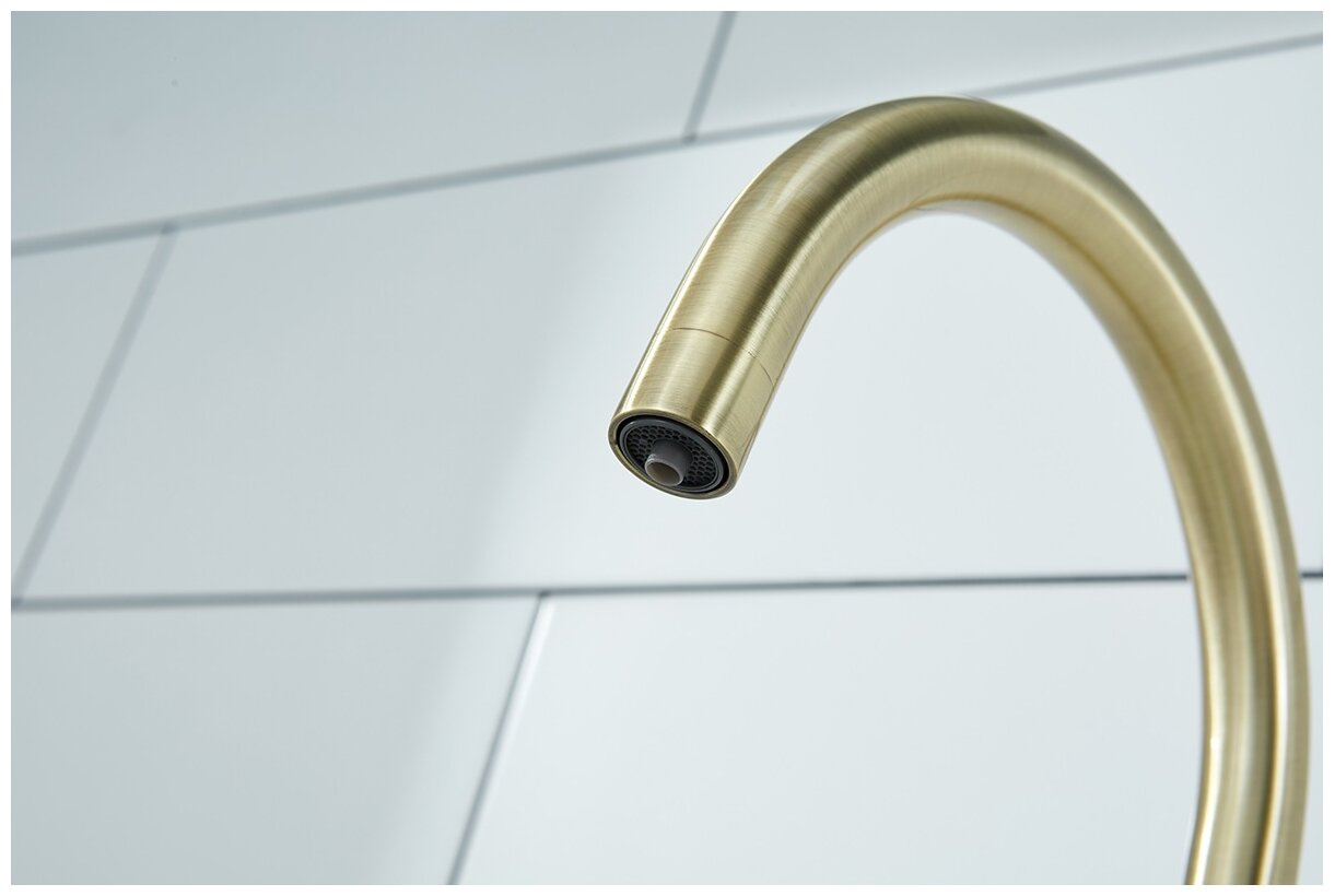 Кухонный смеситель Paulmark ESSEN, подключение к фильтру питьевой воды с отдельным каналом и выпуском, высокий поворотный излив, латунь, на мойку / столешницу, золото, Es213211-G