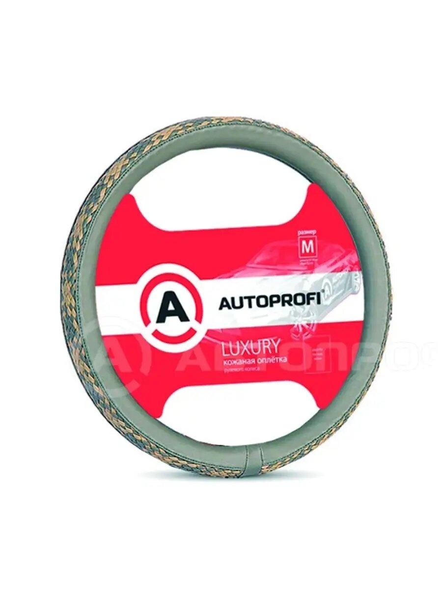 Оплётка руля Autoprofi Luxury натуральная кожа с плетением серая/бежевый M