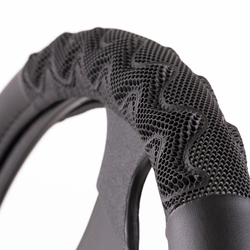 Оплётка руля Autoprofi , экокожа, объмные вставки, чёрный/серый, размер М