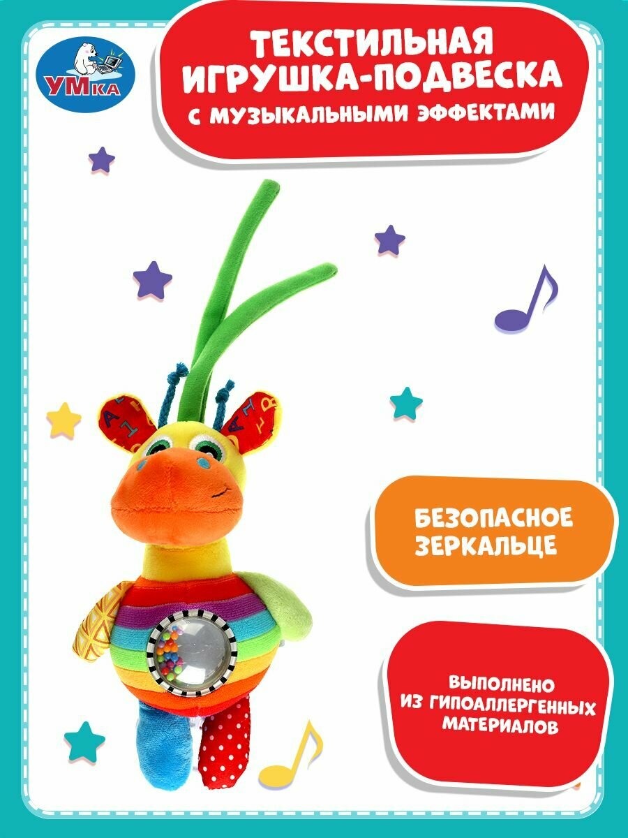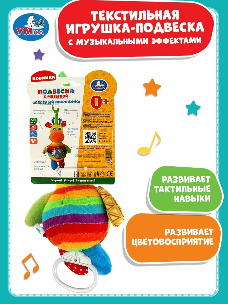 Подвеска с музыкой весёлый жирафик 20 см классическая мелодия, зеркальце, гремящие шарики умка RM-G3 (150) интересное: