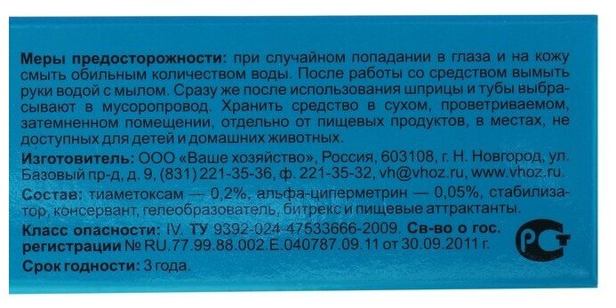 Гель Ваше хозяйство Блокбастер XXI современный от тараканов и домовых муравьев, 45 г, 13 мл