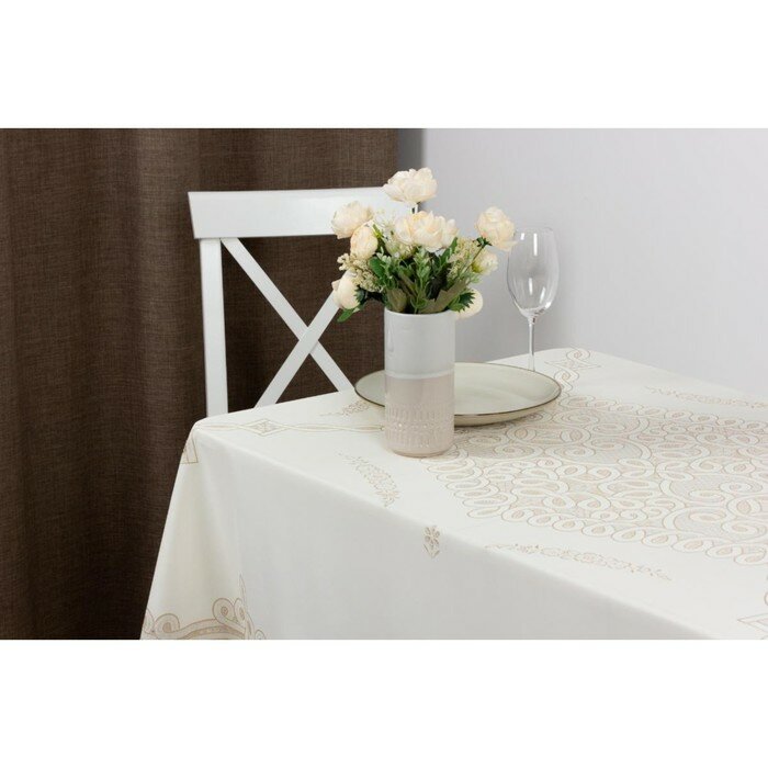 Скатерть клеенка ажурная влагоотталкивающая Towa "Legendа", 160х130 см, цвет бежевый, молочный