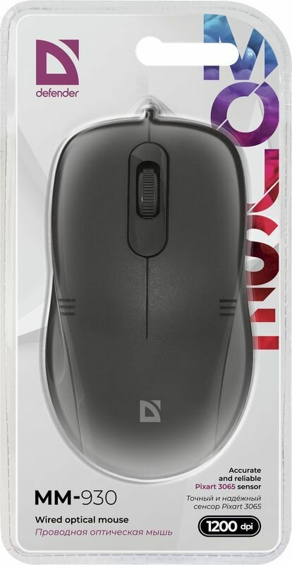 Мышь DEFENDER MM-930, черный, 3 кнопки, USB, проводная, 3 кнопки.