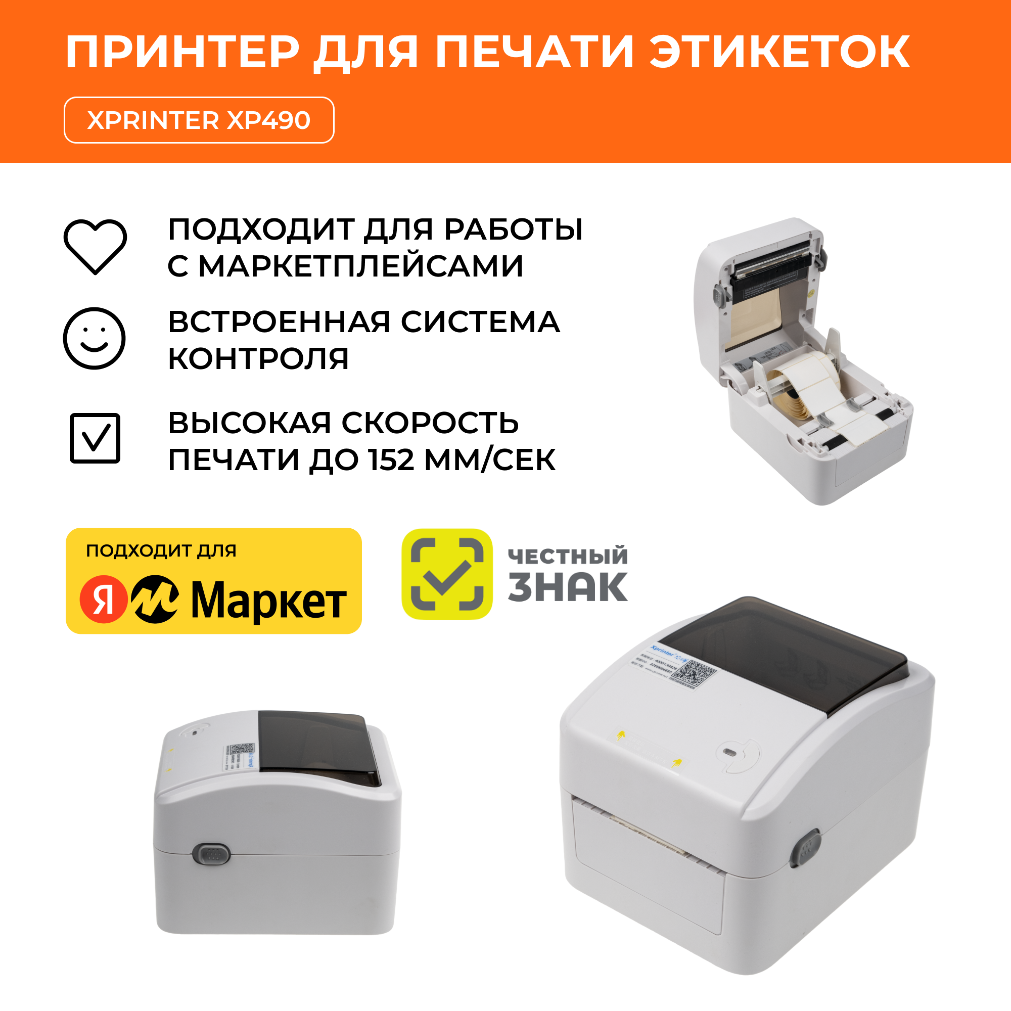 | Плюсы: | Ширина подходит для печати этикеток всех маркетплейсов |