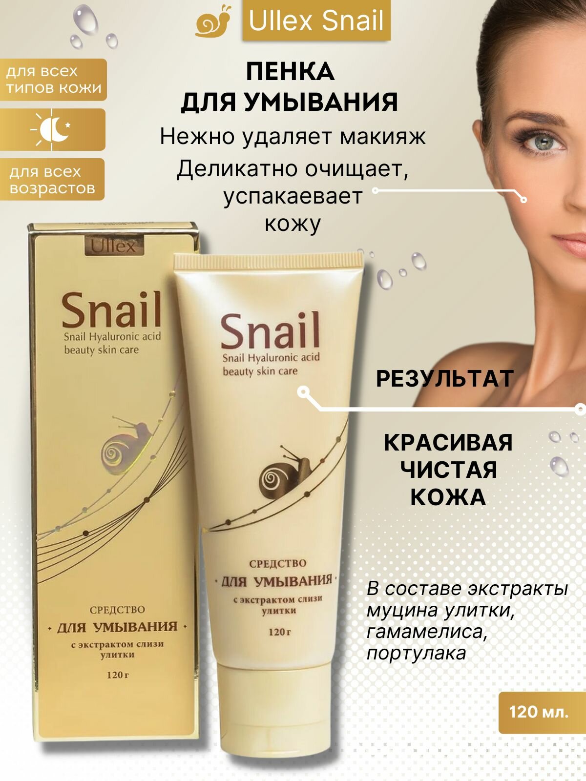ULLEX Средство для умывания Snail 120мл интересное: