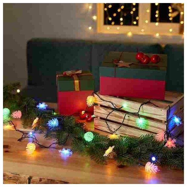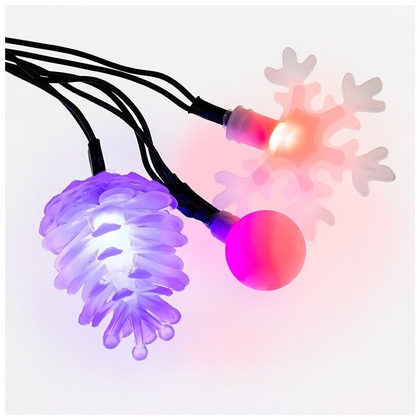 Светодиодная гирлянда NEON-NIGHT "Шарики-Снежинки-Елочки" 4.4 м, 8 режимов, 30 разноцветных светодиодов, тёмно-зелёный провод