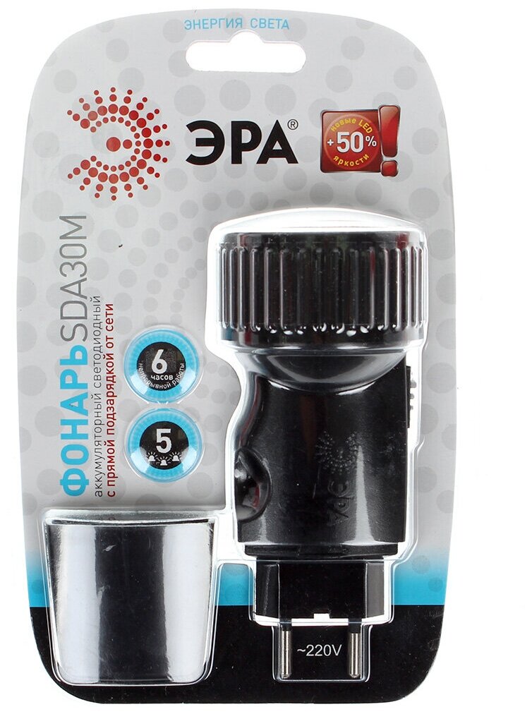 Фонарь эра черный sda30m ledх5 питание аккум ni-mh прямая подзарядка