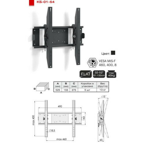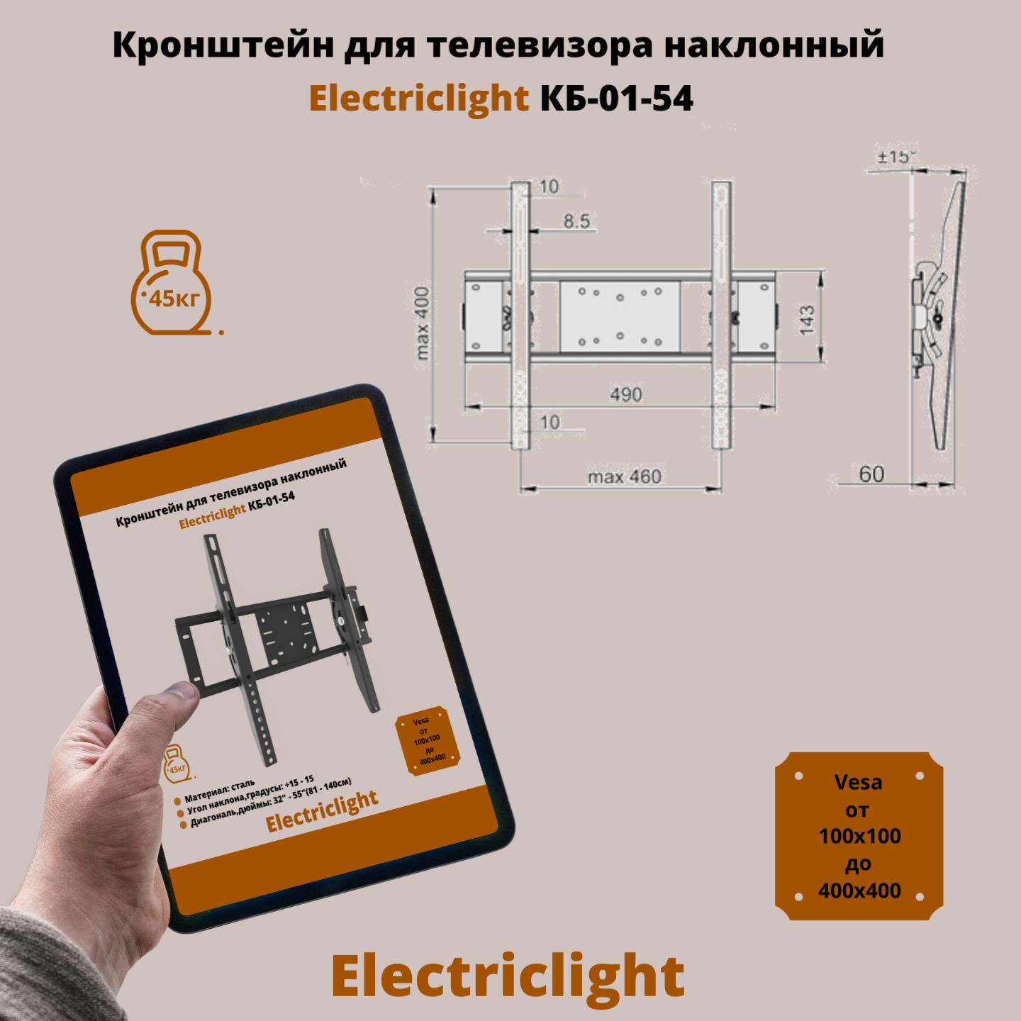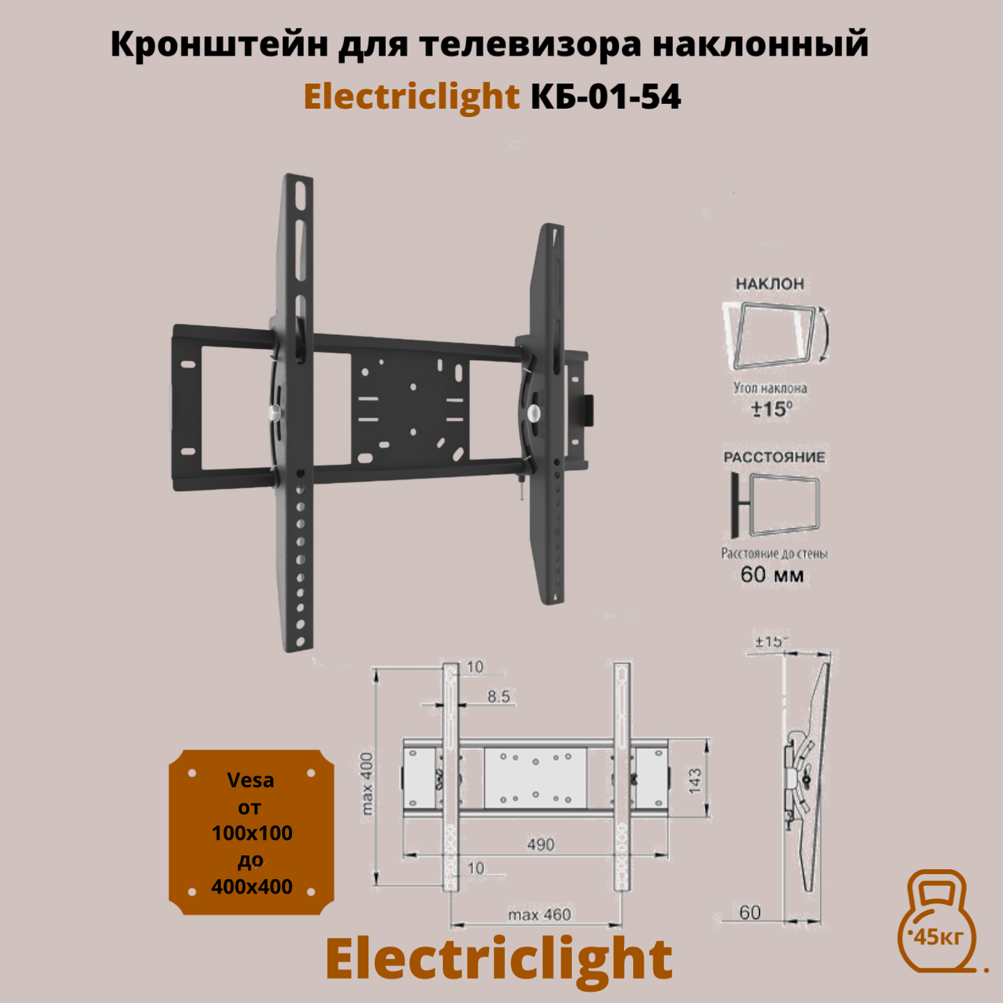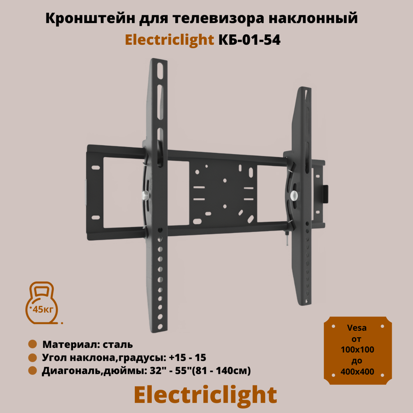 Кронштейн для телевизора Electriclight КБ-01-54 с наклоном до 45кг 32..55 дюймов VESA до 400мм - чёрный
