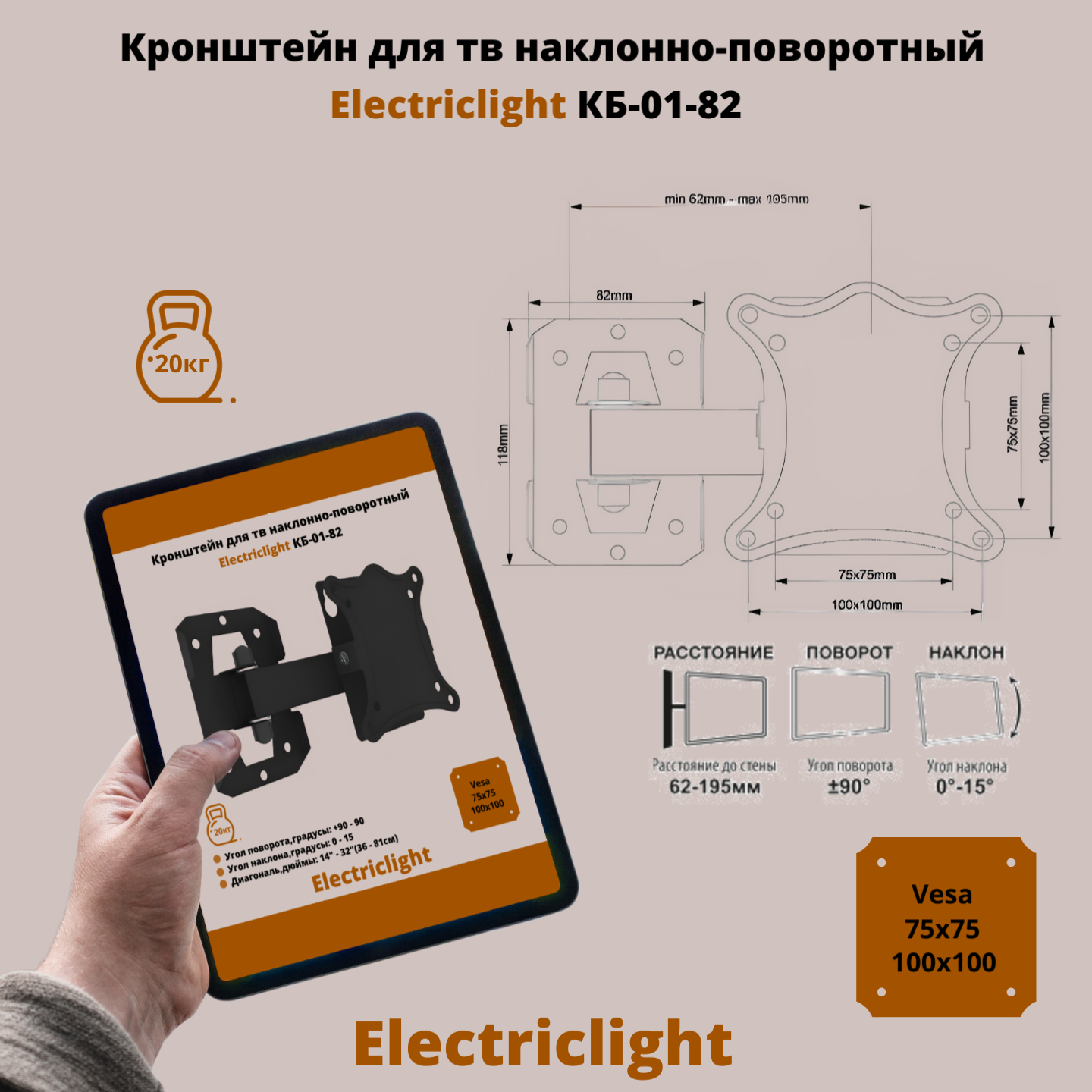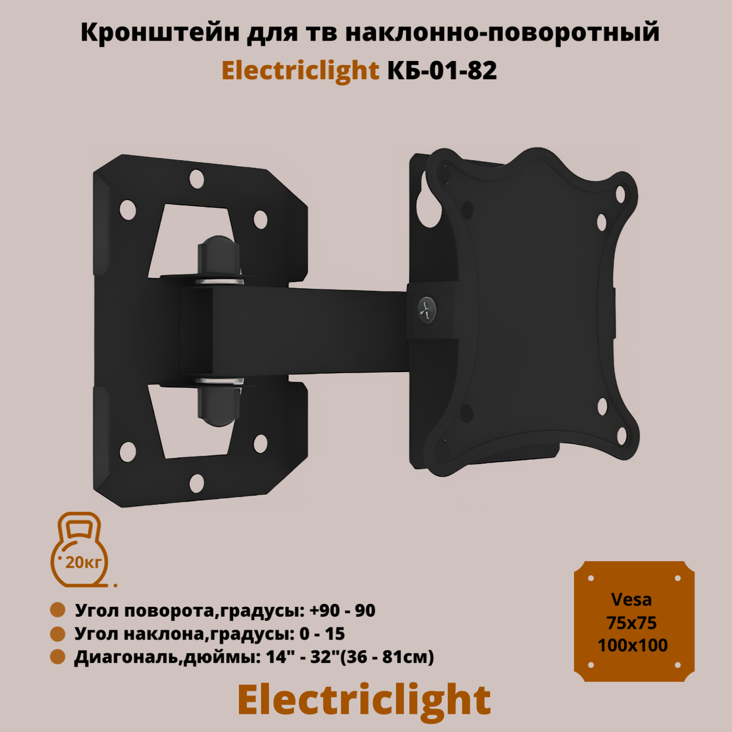 Кронштейн для телевизора Electriclight КБ-01-82 с наклоном и поворотом до 20кг 14..32 дюйма VESA до 100мм, чёрный