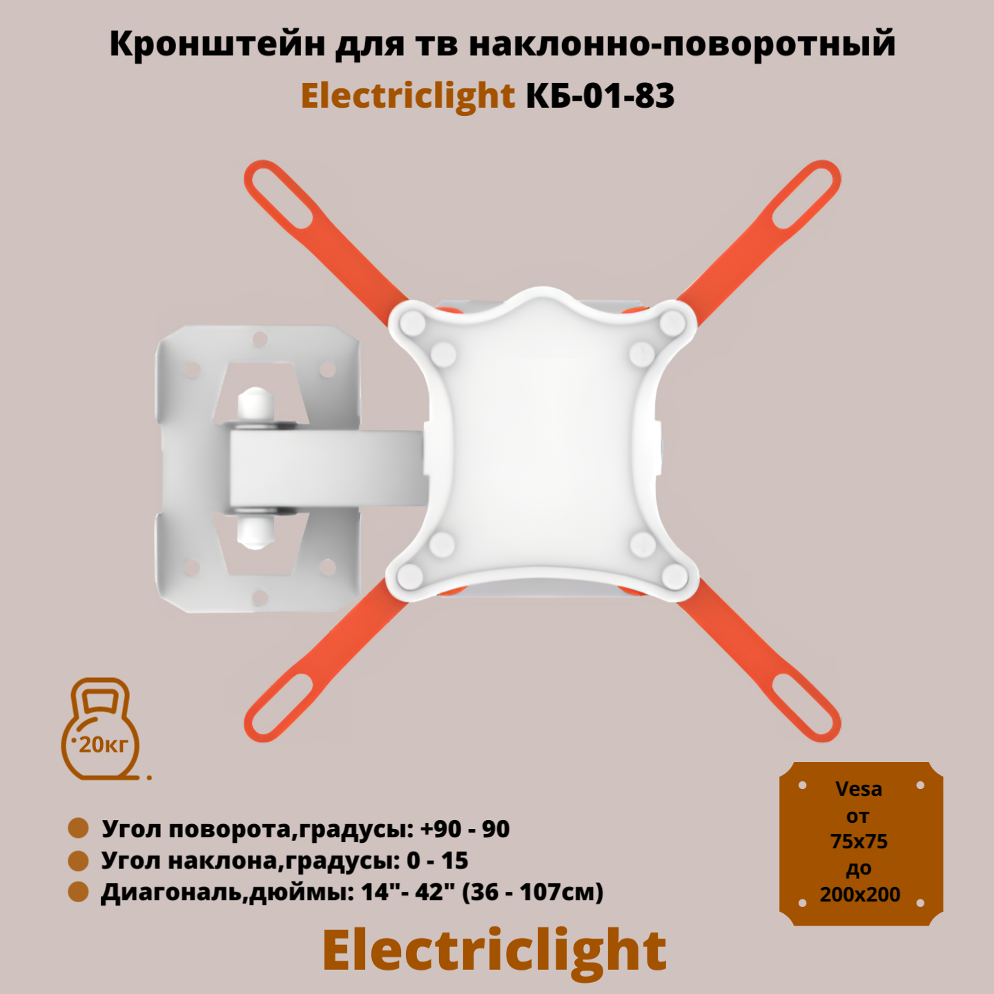 Кронштейн для телевизора на стену наклонно-поворотный с диагональю 14"-42" Electriclight КБ-01-83,белый