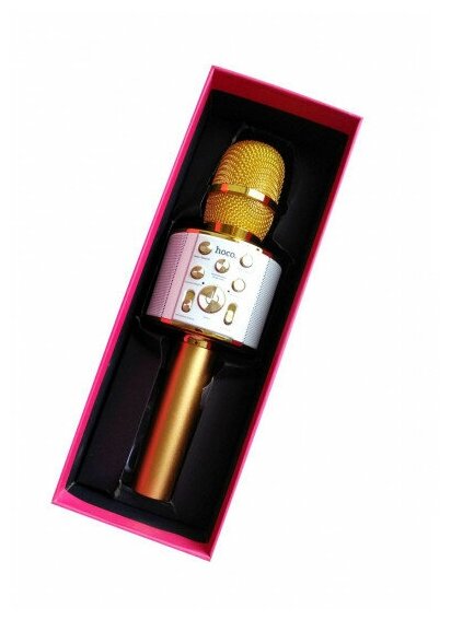СохранитьМикрофон вокальный беспроводной Bluetooth, Hoco BK3 Cool Sound Gold, microSD караоке-плеер - золотой интересное:
