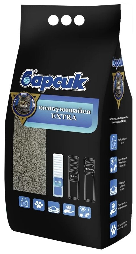 Наполнитель Барсик Extra для кошек, комкующийся, 5.5 л, 4.31 кг
