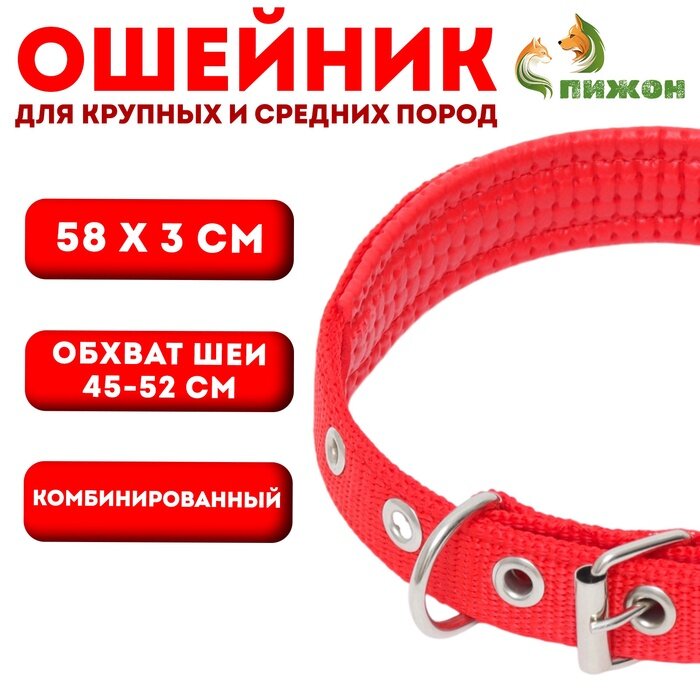 Пижон Ошейник "Комфорт" комбинированный (полиэстер, искусственная кожа), 58 х 3 см, красный