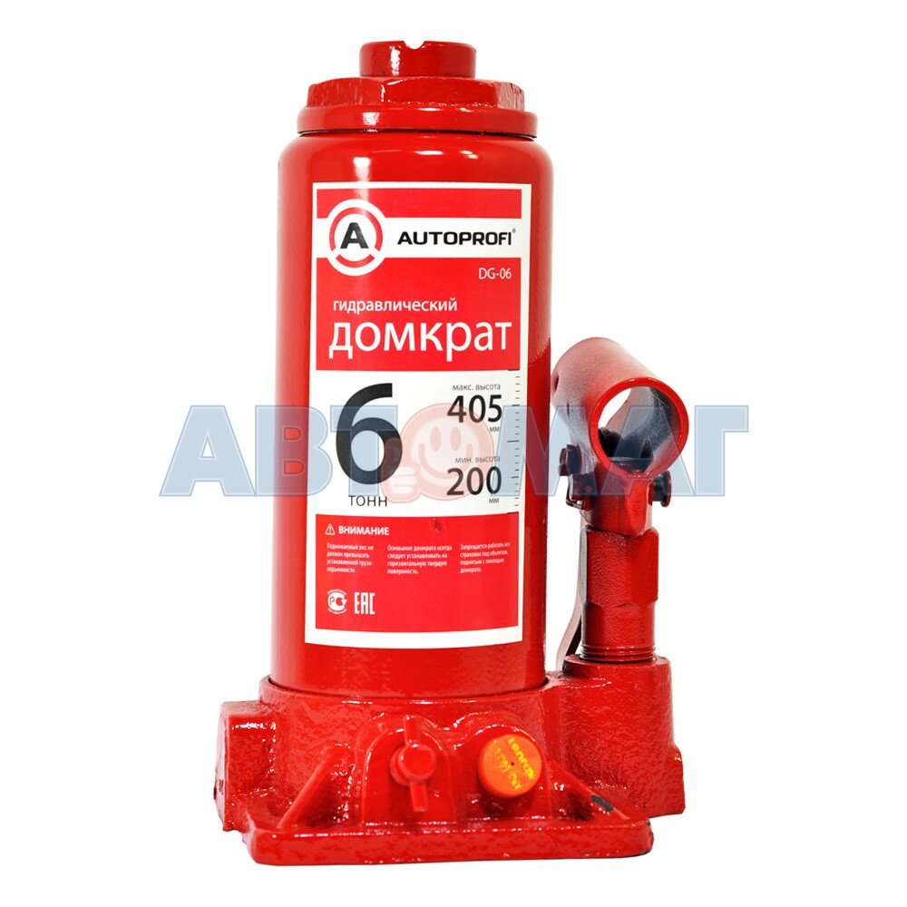 Домкрат Бутылочный Autoprofi, Гидравлический, 6 Тонн, Защита От Перегруза, Высота Подъёма 200 - 405 Мм. AUTOPROFI арт. DG-06