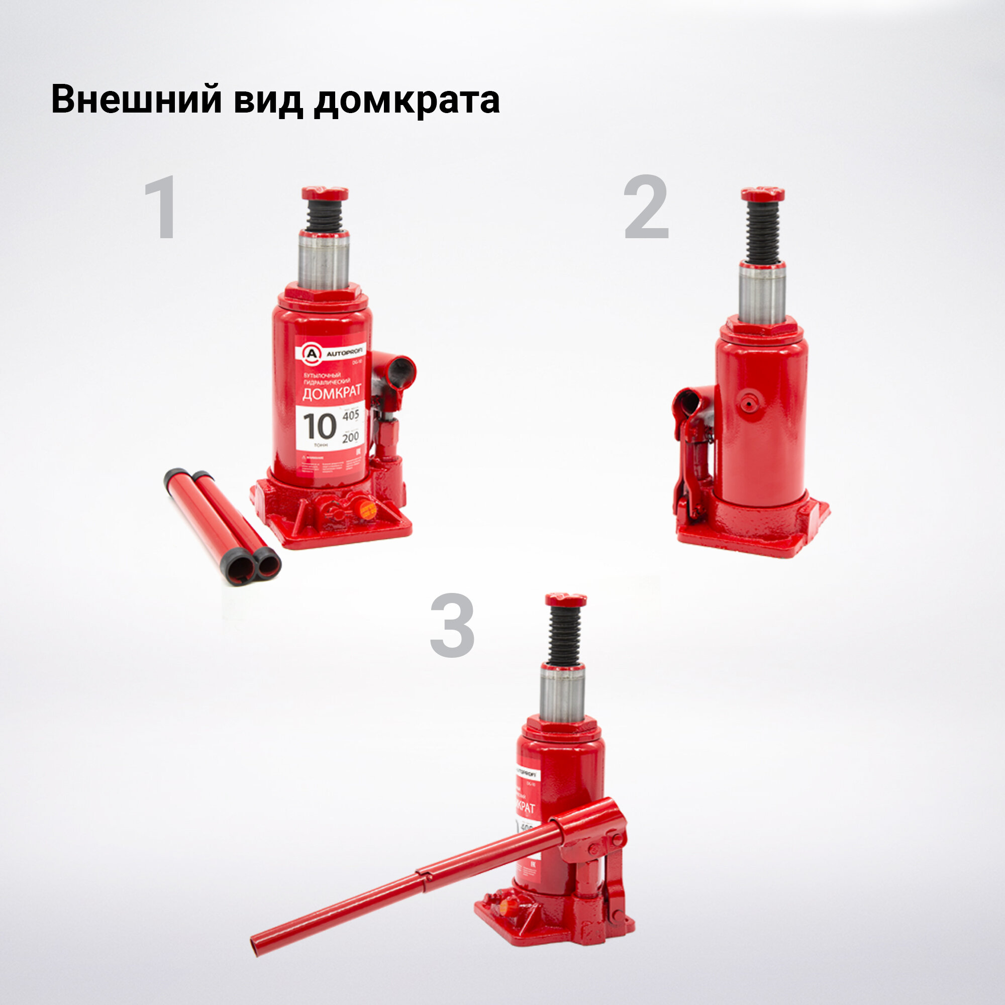 Домкрат Бутылочный Autoprofi, Гидравлический, 10 Тонн., Защита От Перегруза, Высота Подъёма 200 - 405 Мм. AUTOPROFI арт. DG-10