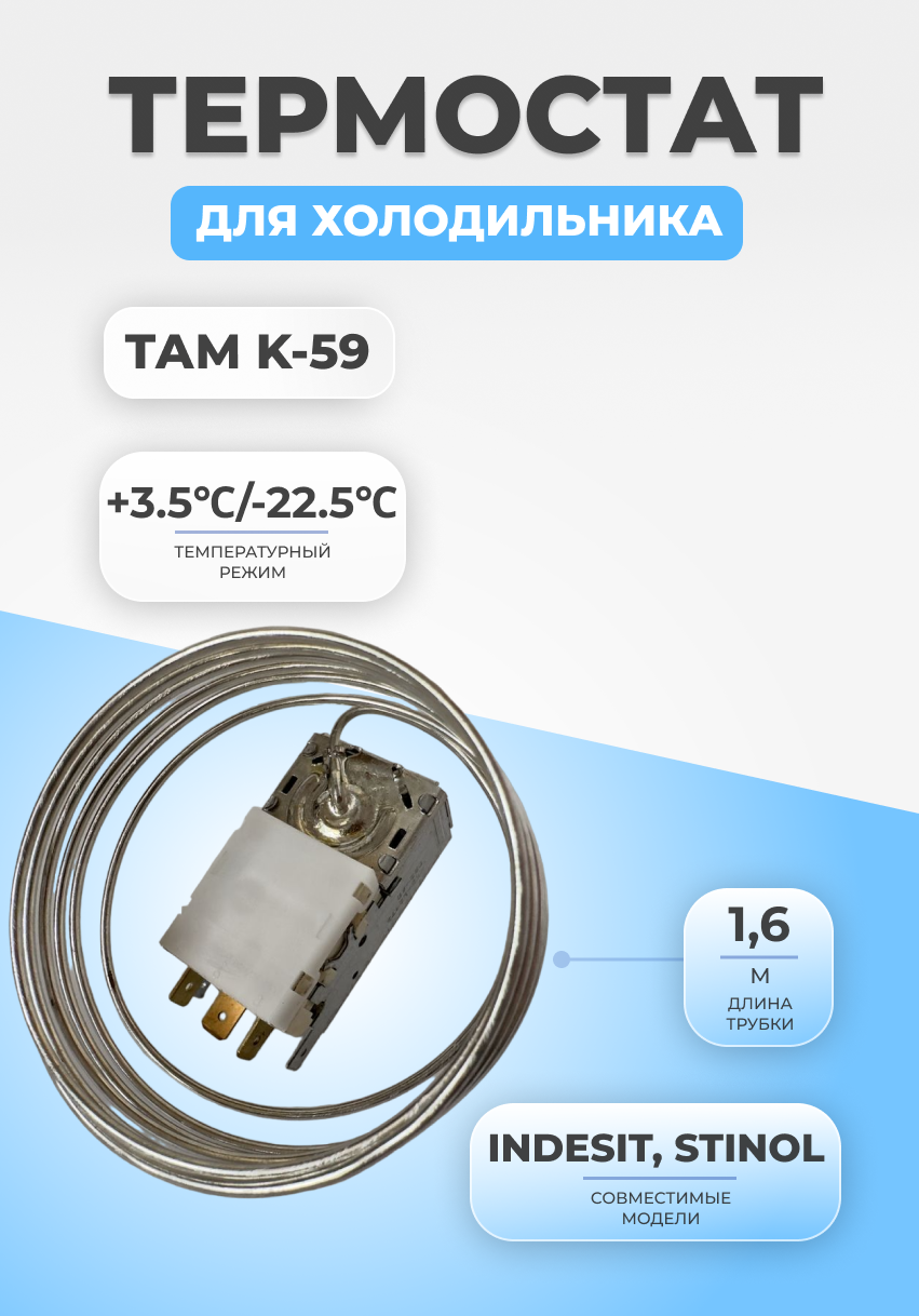 Терморегулятор для двухкамерного холодильника Stinol, Indesit, Hotpoint-Ariston, Ariston, Liebherr, Атлант МХМ, ТАМ-133, К59, Х1007