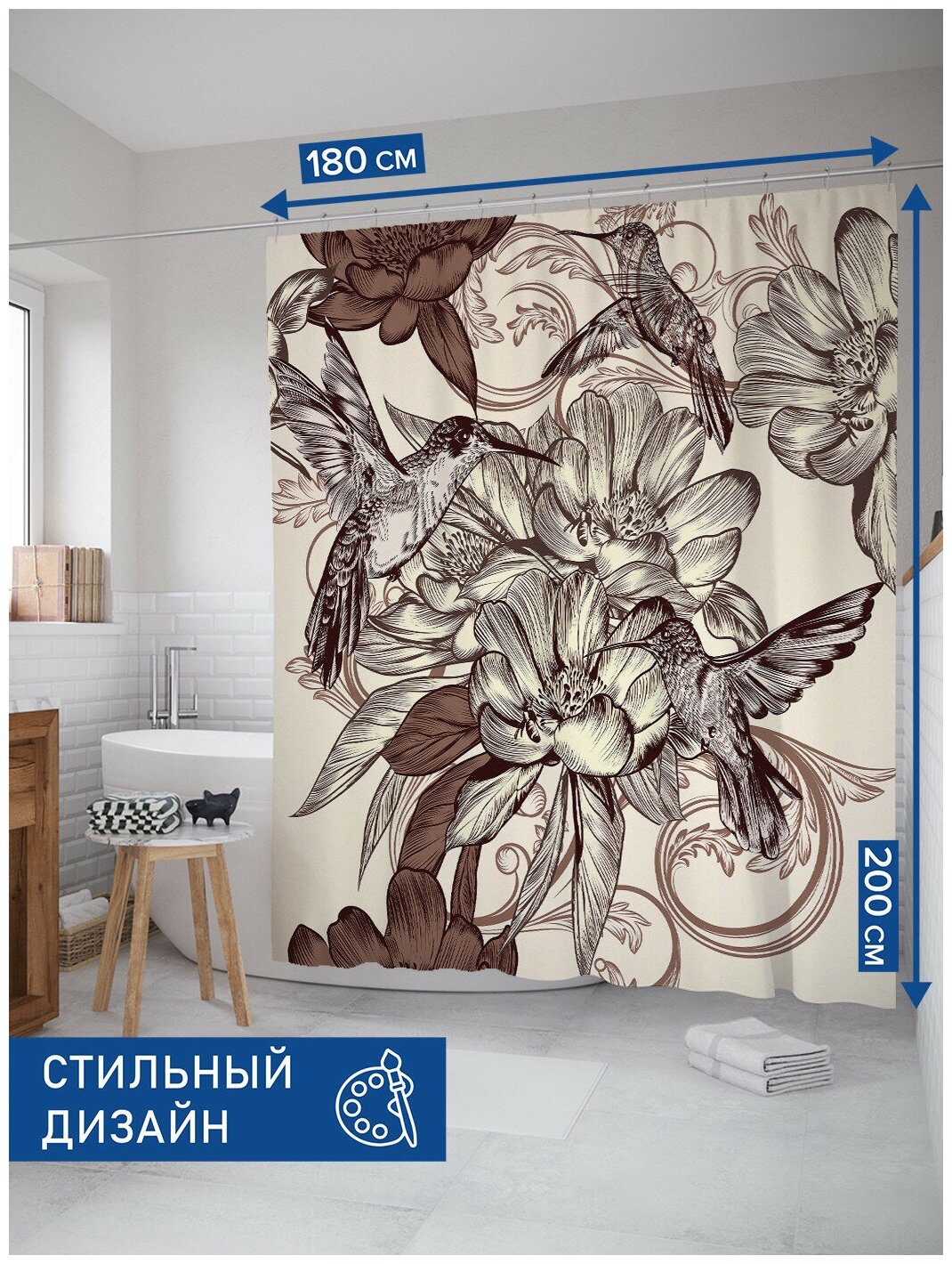 Штора водоотталкивающая для ванной, занавеска в ванную комнату тканевая JoyArty "Погоня за нектаром", 180х200 см