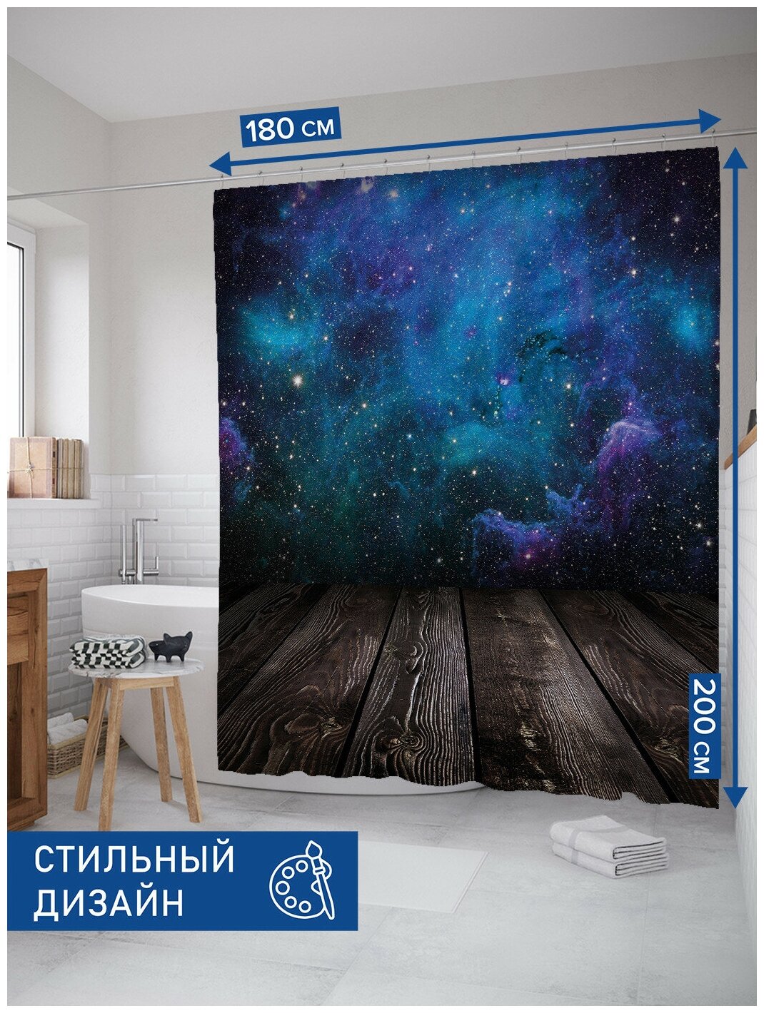Штора водоотталкивающая для ванной, занавеска в ванную комнату тканевая JoyArty "Космический мост", 180х200 см