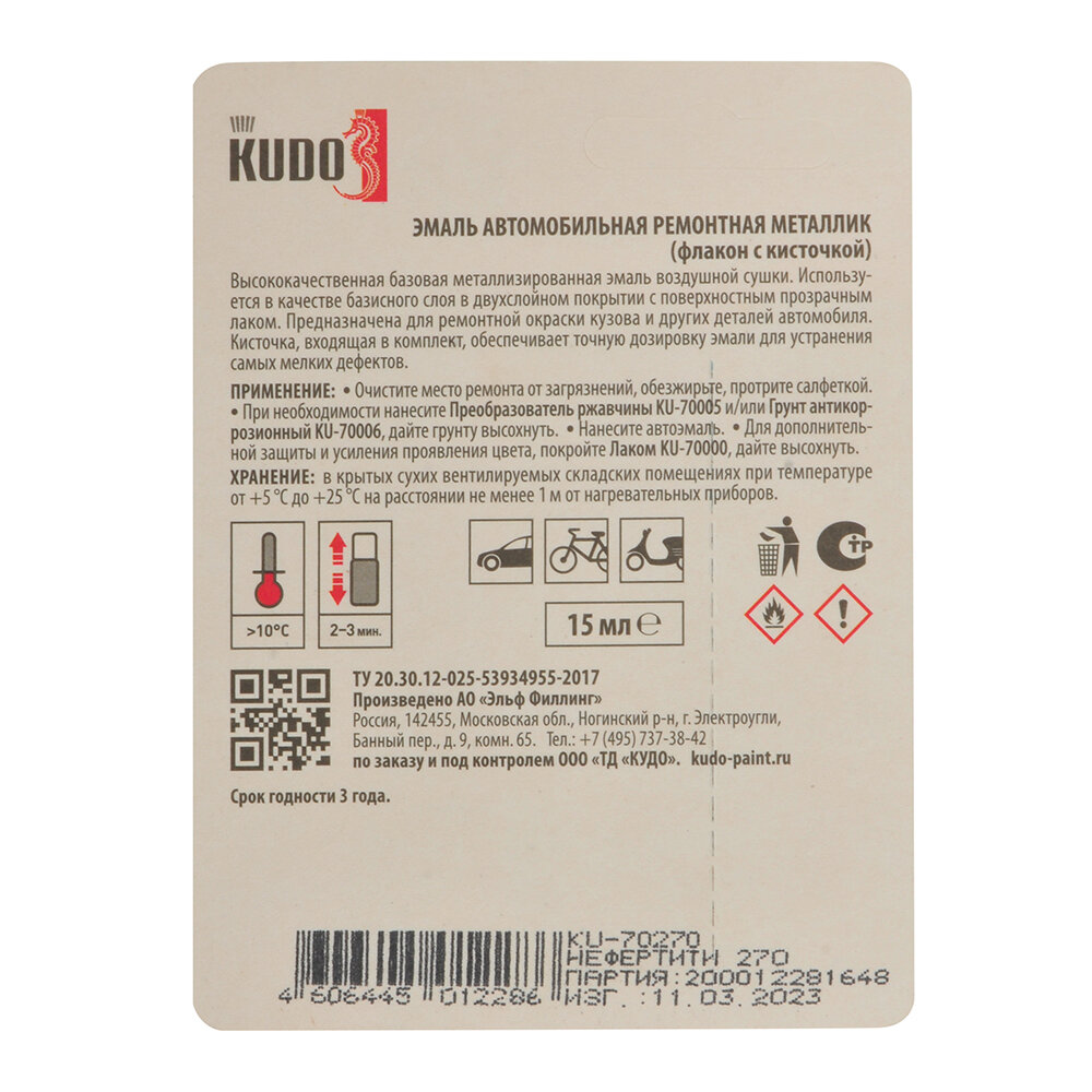 KU-70116 Эмаль авто/рем. с кисточкой (15мл.) К KUDO KU70116