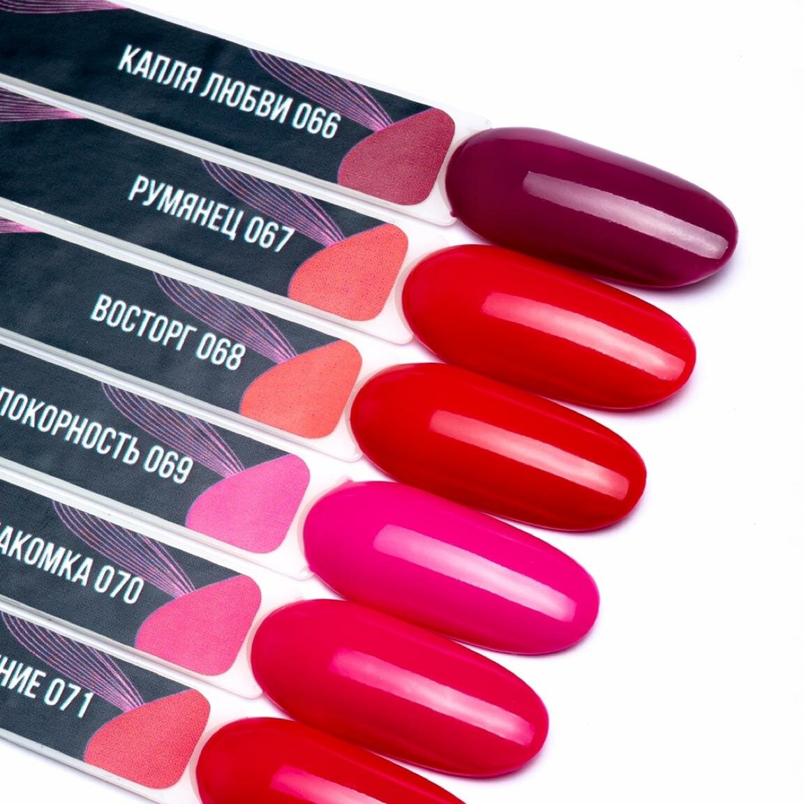 | Отзыв: | 055 это очень яркий красный, 056 на много темнее , они хорошие. Несколько других цветов покупала, ложатся хорошо, но носятся очень плохо. Не достаточно фото для понимания цвета, некоторые с шиммером, хотя в объявлении это не указано |
