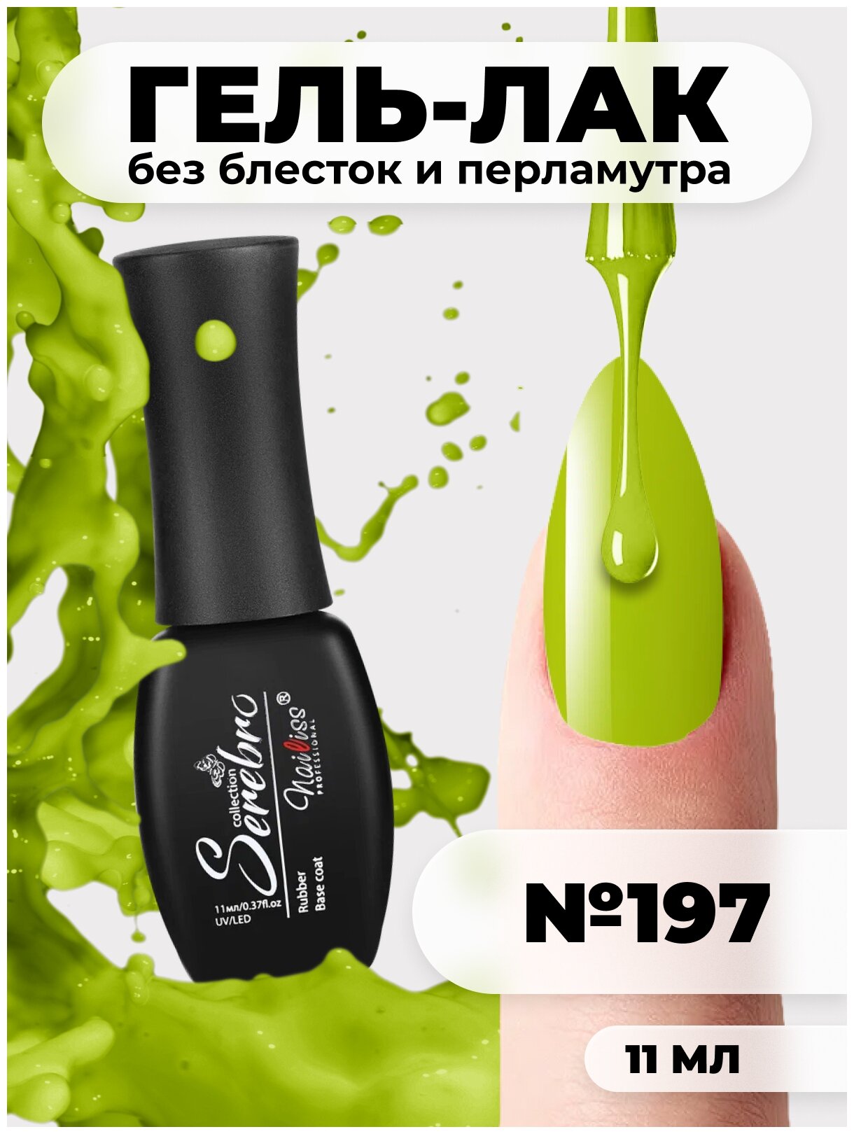 Купить Гель-лак для ногтей Serebro №197 для маникюра и педикюра, 11 мл