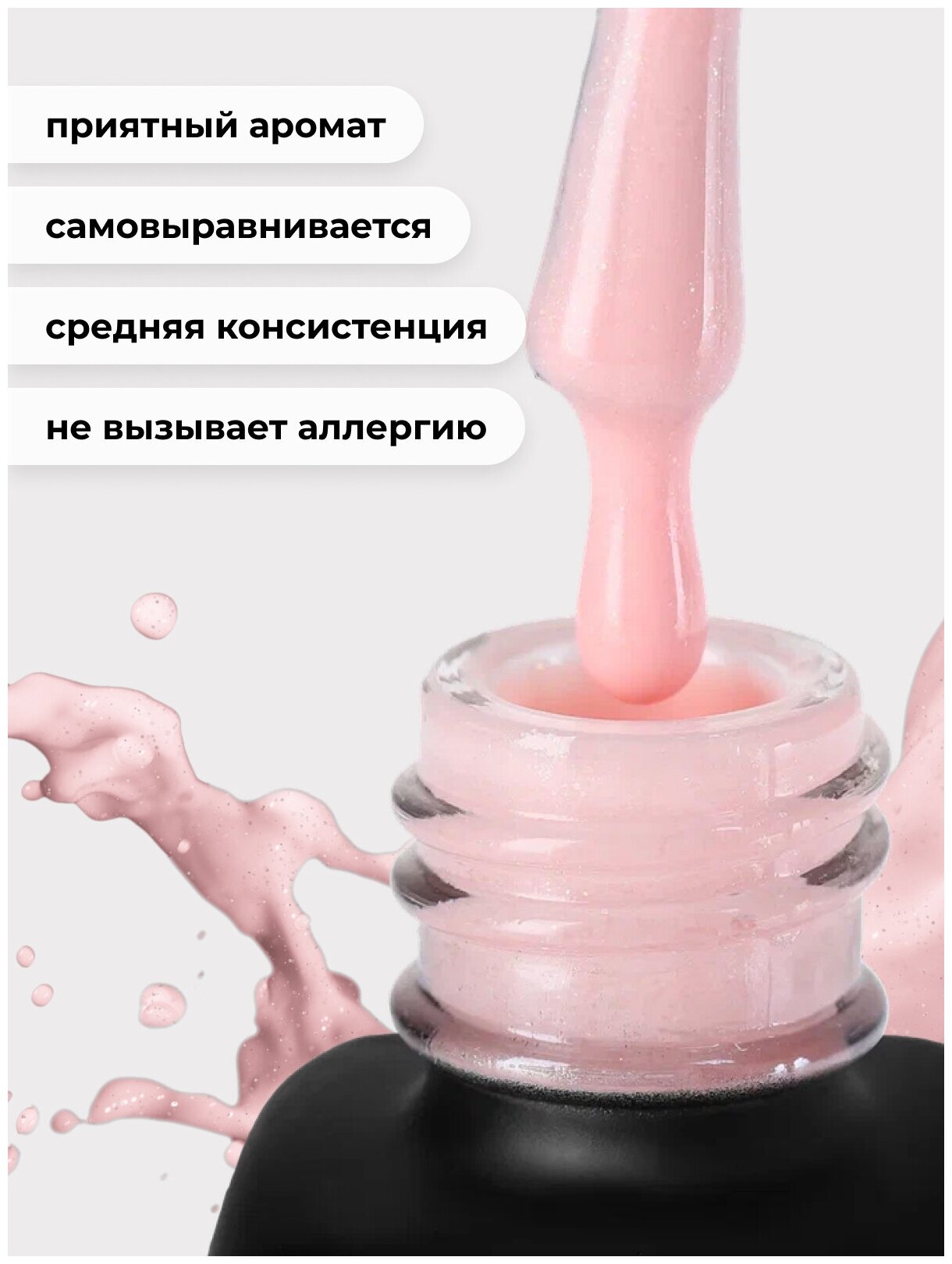 Гель-лак для ногтей Serebro с блестками, плотный, гипоаллергенный, светлый розовый, 11 мл