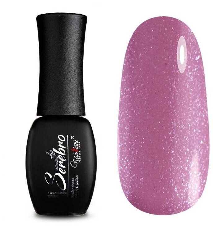 Гель-лак для ногтей Serebro с блестками, плотный, гипоаллергенный, светлый розовый, 11 мл