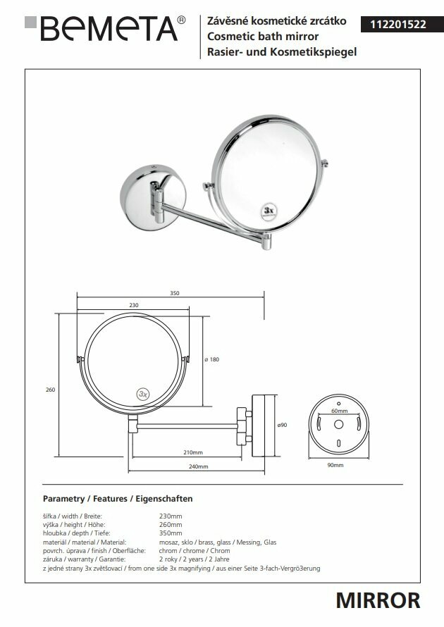 Косметическое зеркало без подсветки Bemeta 112201522 интересное: