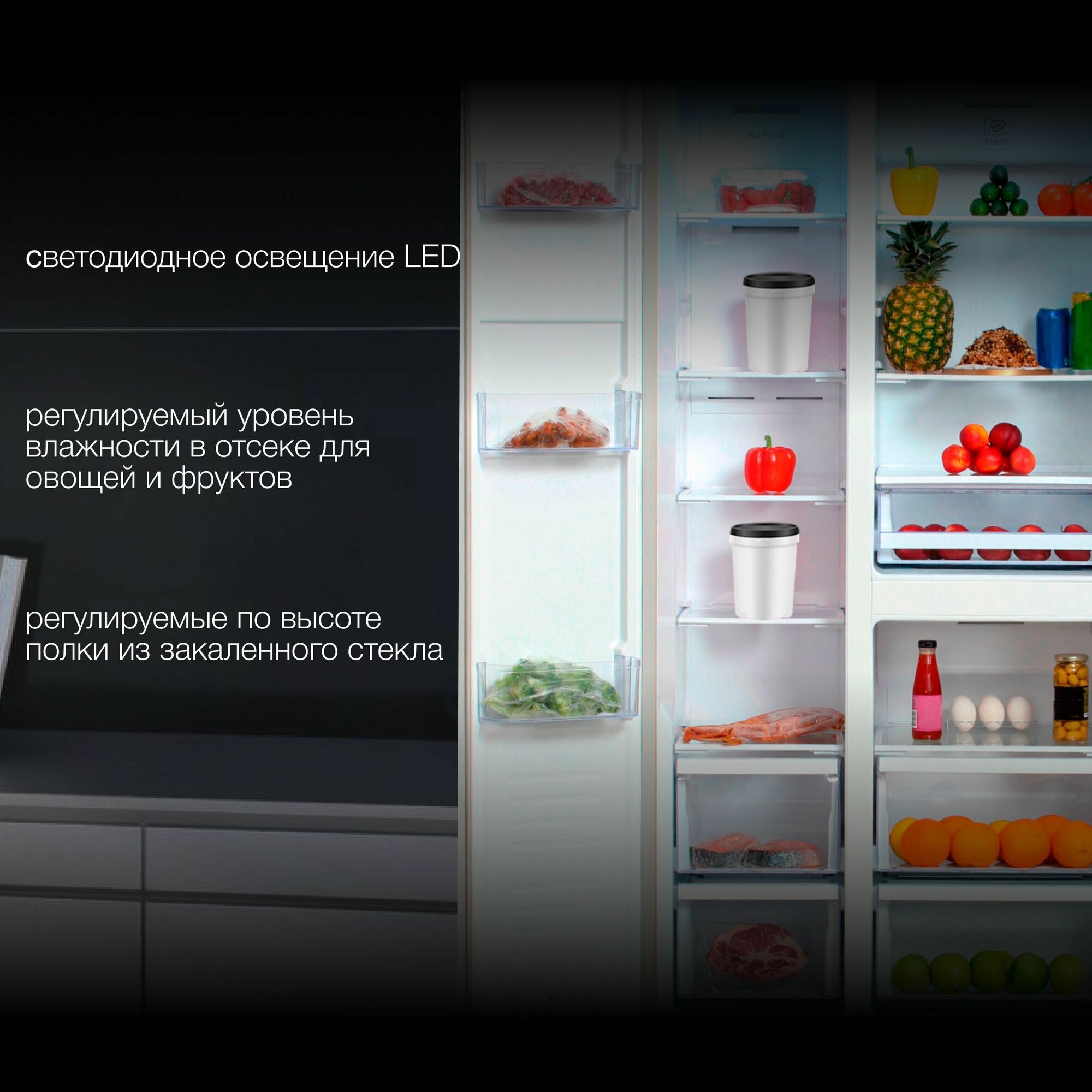 | Минусы: | Думал что левая половина тоже настраивается холодильник моорозилка а настраивается только нижняя маленькая камера. Стоит слева приходится все время обходить дверцу |